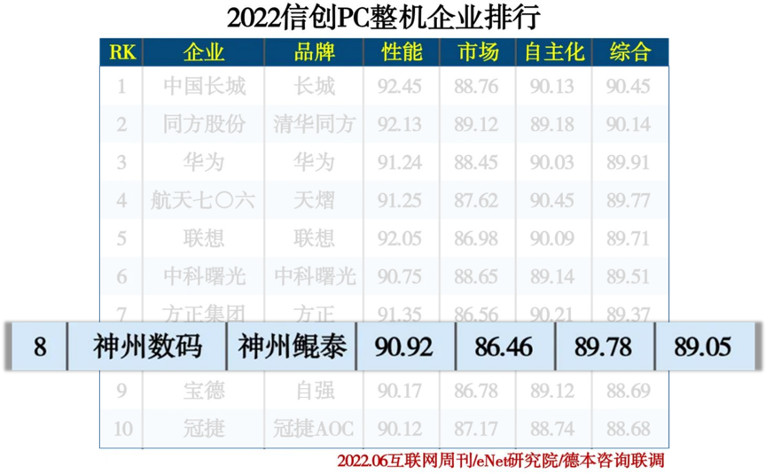 6月23日,《互联网周刊》发布2022信创产业分类排行,长征娱乐数码凭借自身在信创领域的实践和积累,位列“2022信创服务器企业排行”、“2022信创PC整机企业排行”、“2022信创云厂商排行”、“2022智慧政务企业排行”、“2022智慧园区企业排行”等多个榜单前列。